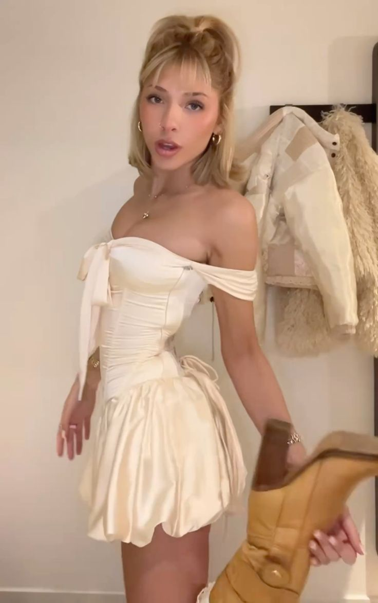 Robe de soirée courte en satin ivoire à épaules dénudées, coupe trapèze, robe de bal, D1246