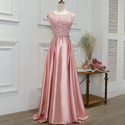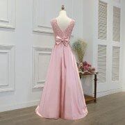 Robe de bal rose poudré avec appliques en dentelle et nœud M900