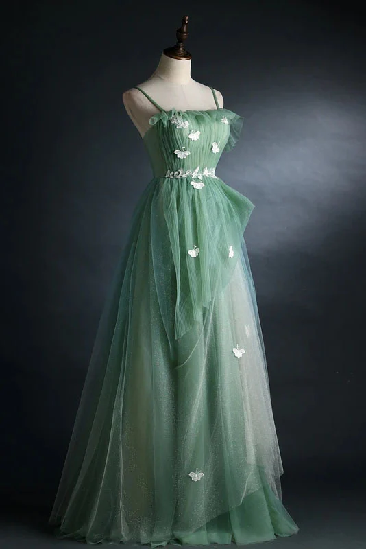 Robe de soirée longue trapèze à bretelles vert clair MD7216