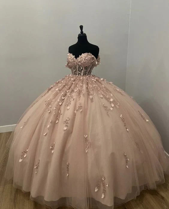 Robe de bal rose clair à appliques, robe de soirée formelle MD7732