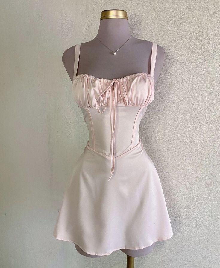 Robe de soirée courte en satin rose clair à bretelles, coupe trapèze, jolie robe de soirée, D1076
