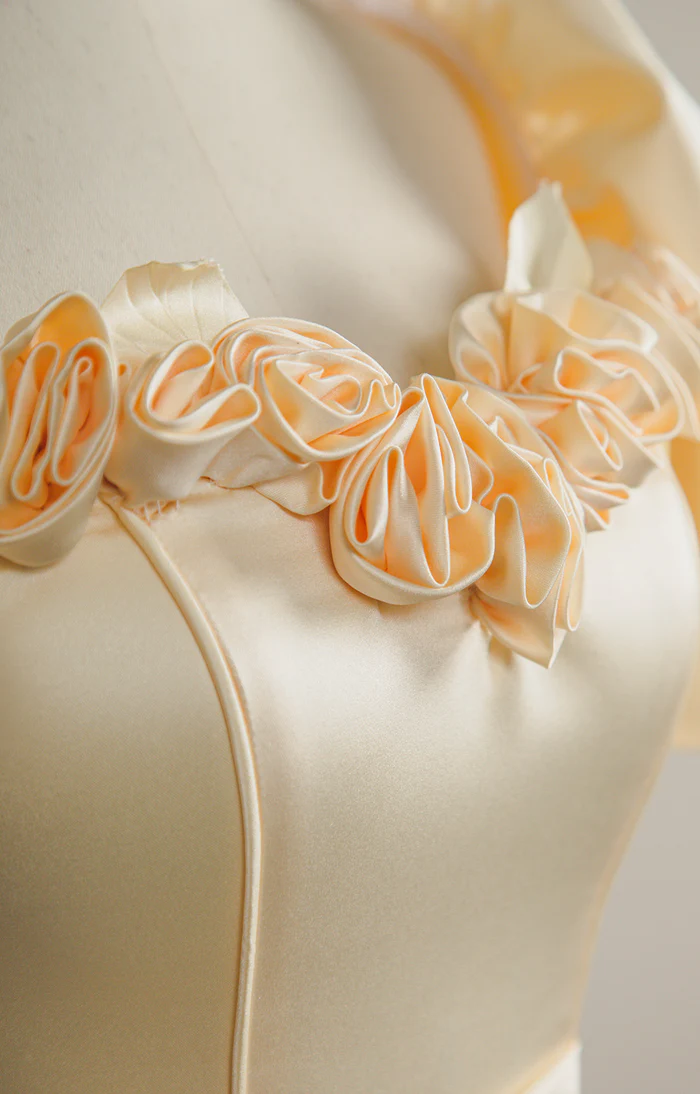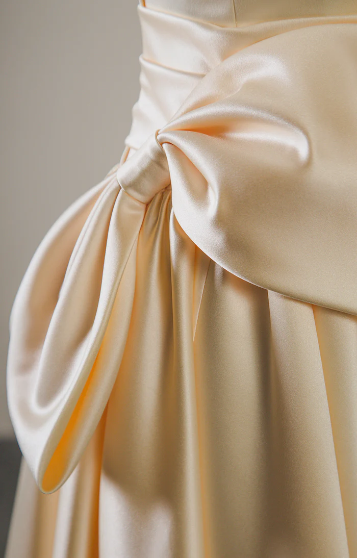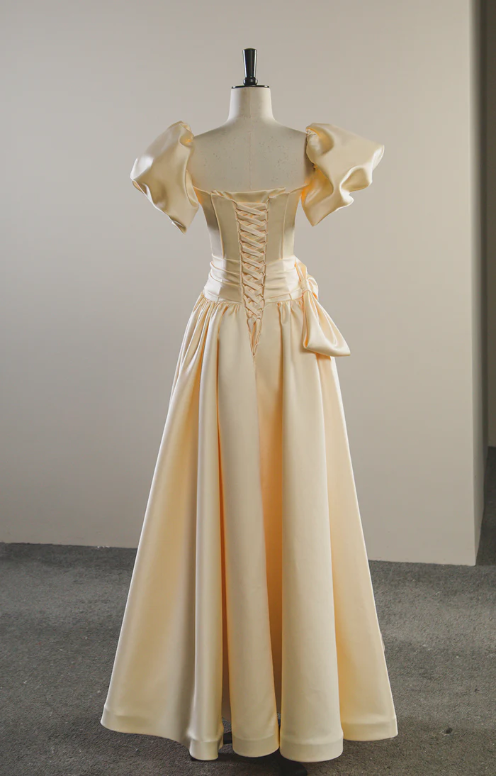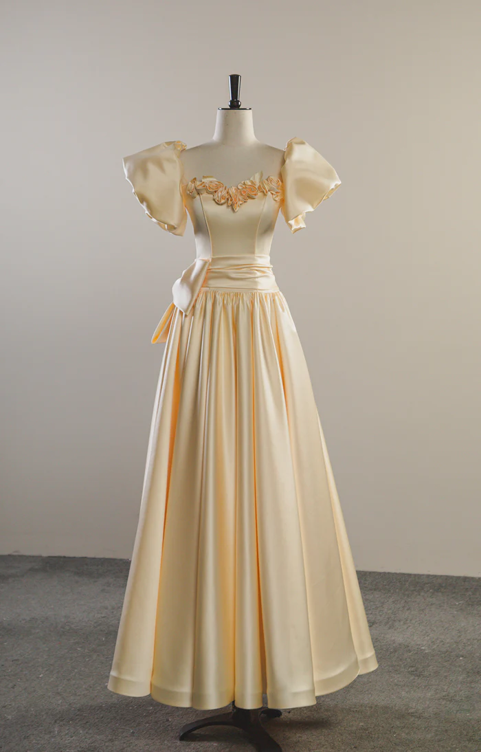 Robe de bal longue en satin jaune clair, coupe trapèze, jolie tenue de princesse pour anniversaire, MD7767
