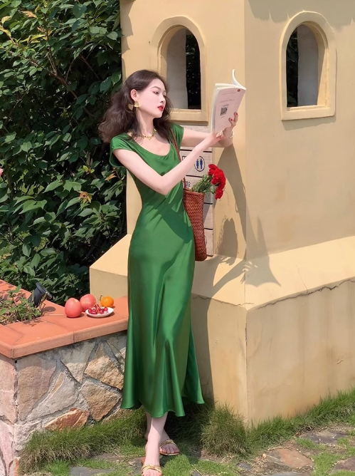 Robe d'été minimaliste à col ras du cou pour femme, tenue de vacances, tenue de rendez-vous quotidien, D2968