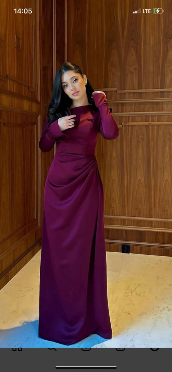 Robe de soirée longue et modeste violet foncé à manches longues MD7747
