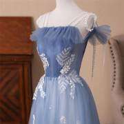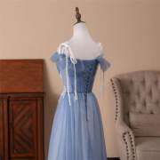 Robe longue trapèze bleu marine en tulle avec bretelles à nouer M905