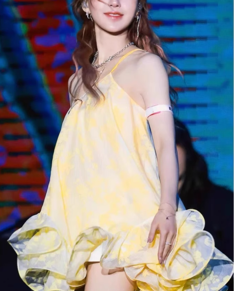 Robe de soirée d'été jaune clair à bretelles simples et ourlet volanté, nouvelle collection tendance, D1441