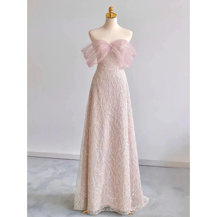 Robe de bal rose à épaules dénudées et paillettes, tenue de soirée princesse élégante, MD7571