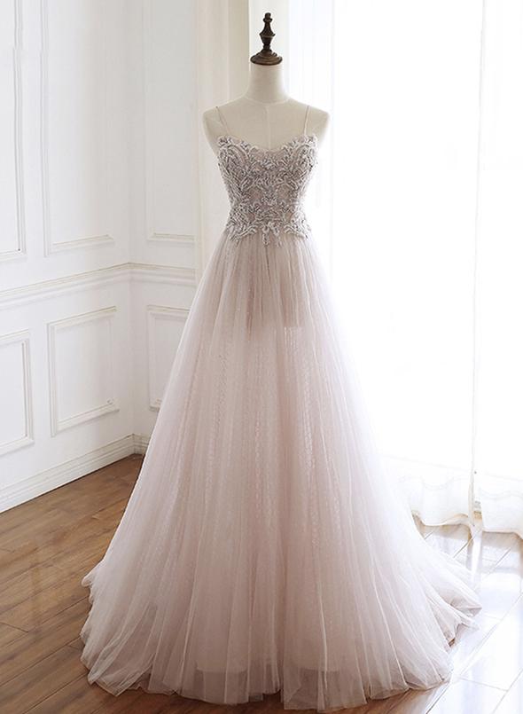 Robe de bal longue en tulle rose, robe de soirée rose M2430