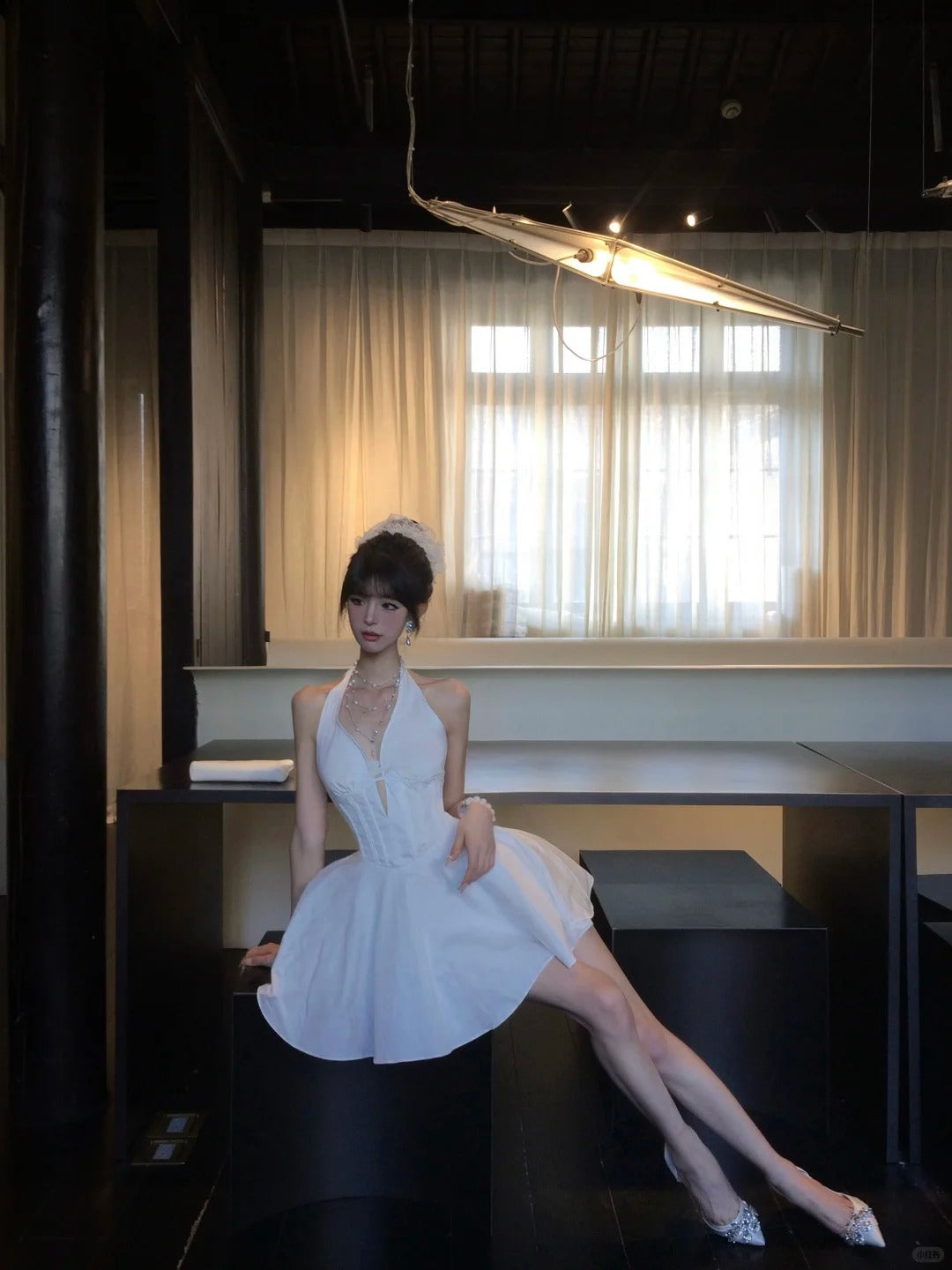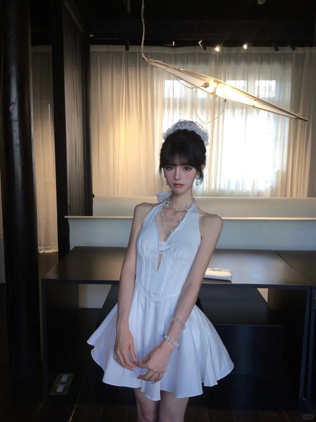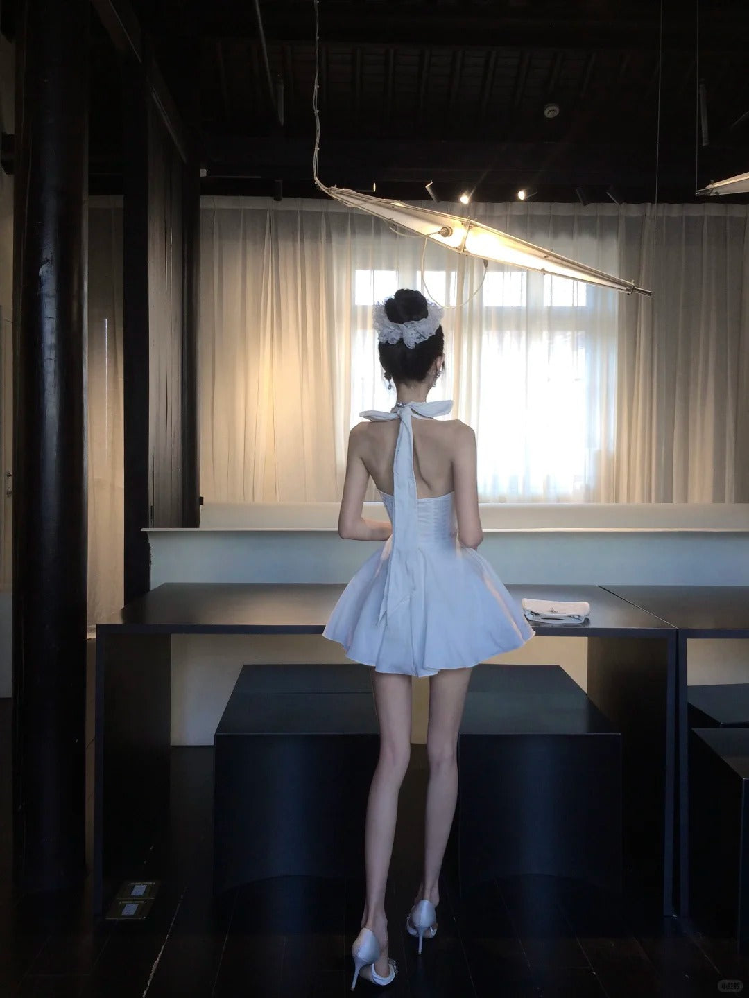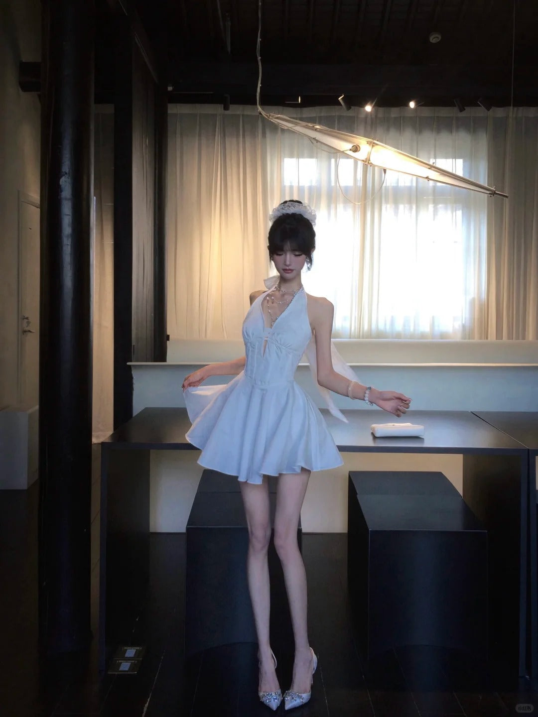 Robe de bal courte plissée à col licou, coupe trapèze, robe de soirée, robe de fête d'anniversaire, D2110