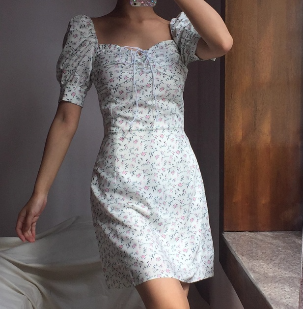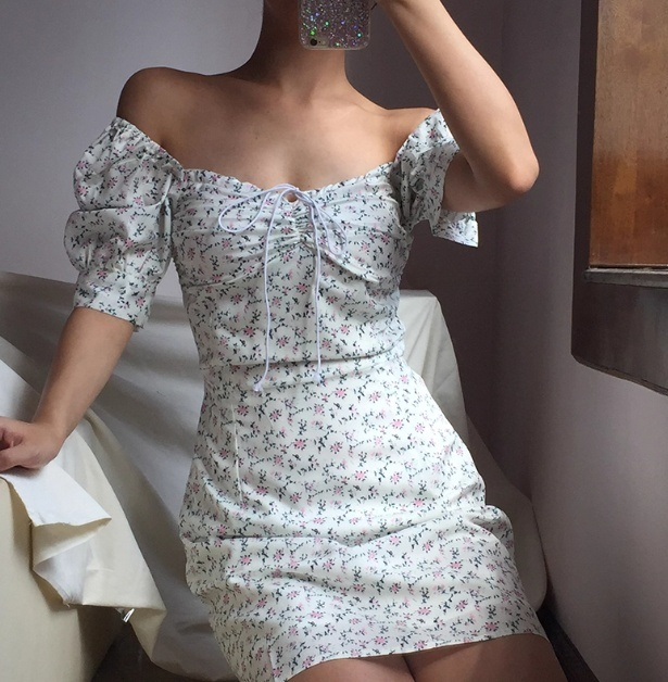 Robe d'été courte plissée à lacets et col carré pour femme, tenue de vacances et de rendez-vous, D2103