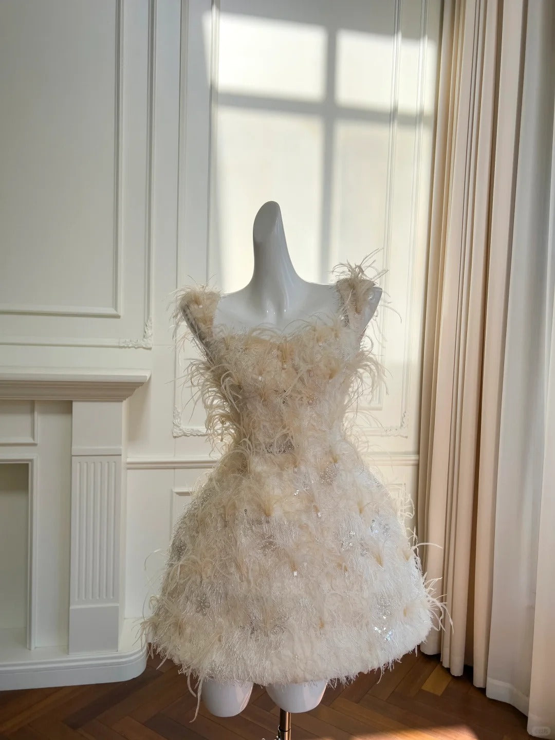 Robe trapèze à encolure carrée, plumes, perles, paillettes, fleurs, Sweet 16, jupe, robe de soirée, robe de bal D1872