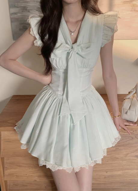 Robe de soirée élégante à col en V, sans manches, à lacets et à volants, plissée, D1760
