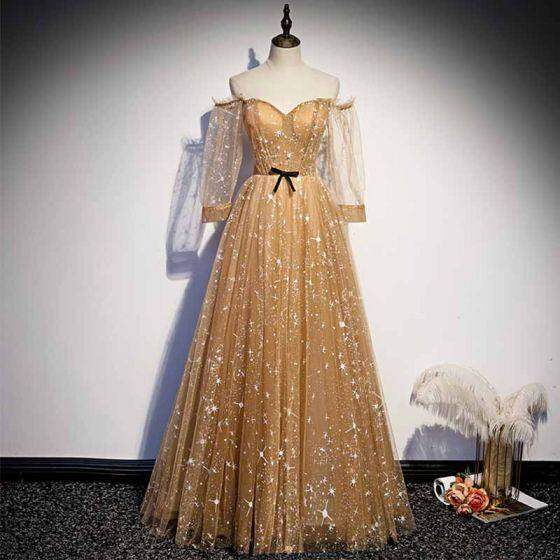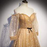 Robe de bal princesse à épaules dénudées et étoiles dorées M986