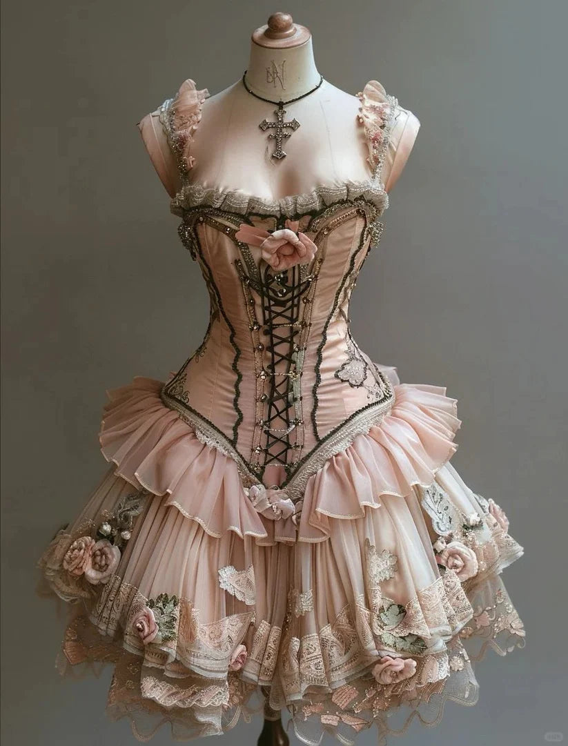 Robe de princesse Lolita rétro à motif floral 3D, coupe trapèze, en mousseline de soie perlée, à volants, robe de soirée, robe de bal D1567