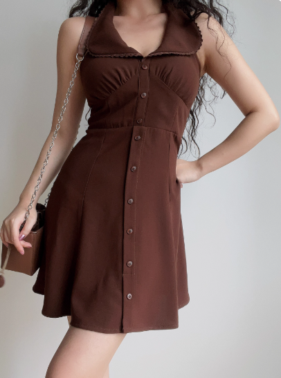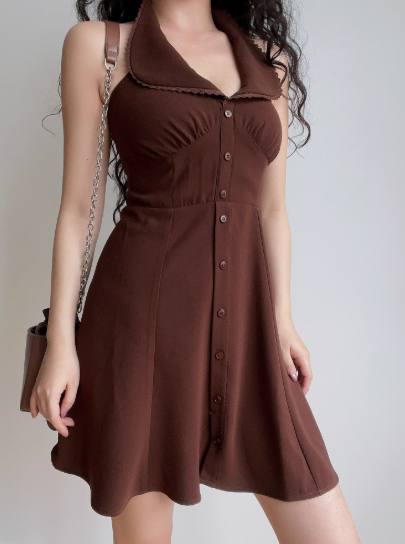 Jupe courte rétro trapèze à boutons et col licou pour femme et adolescente, tenue décontractée d'été D2138
