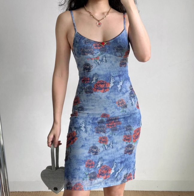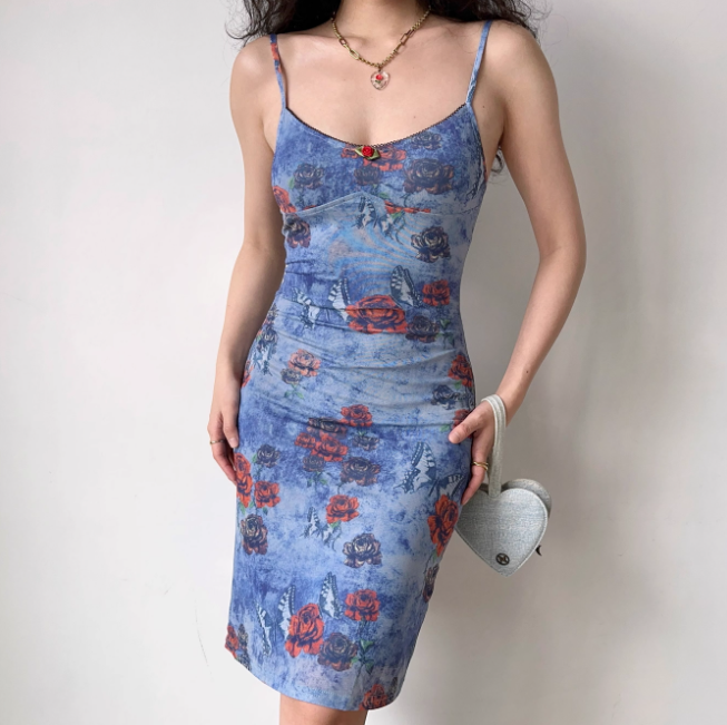 Jupe ajustée à bretelles spaghetti rétro, longueur genou, robe de vacances d'été pour femme, D2219
