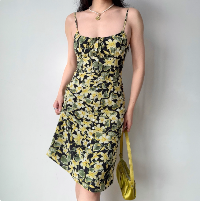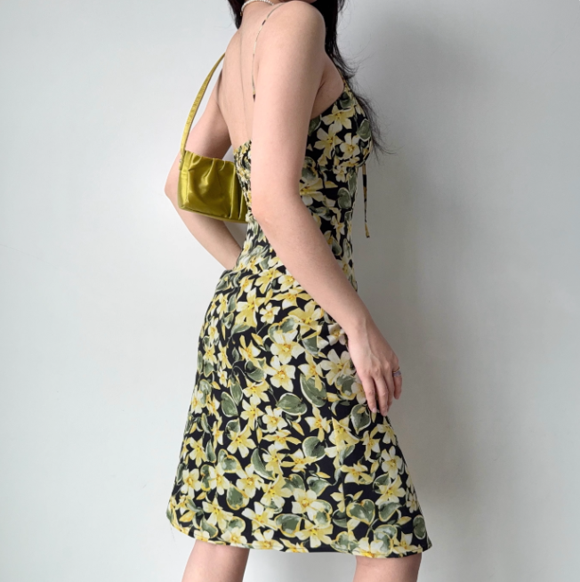 Robe d'été rétro à bretelles spaghetti et lacets, jupe courte florale, pour femme, adolescente, vacances, rendez-vous, D2279