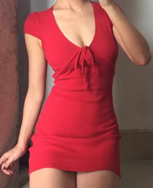 Robe courte rouge à lacets et col en V rétro pour femme, tenue d'été pour rendez-vous, soirée, D2030