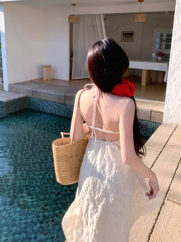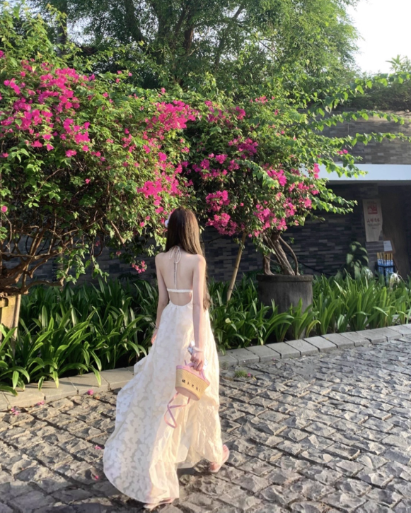 Robe longue dos nu à volants pour femme, tenue de soirée, vacances d'été, D1941