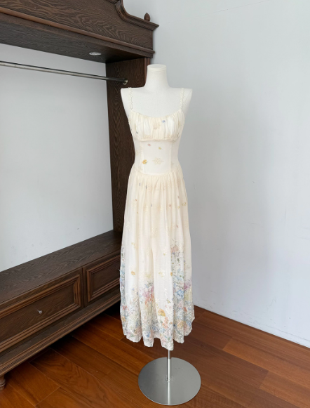 Jupe longue plissée brodée à bretelles spaghetti en bord de mer pour femme, robe de vacances d'été D1910