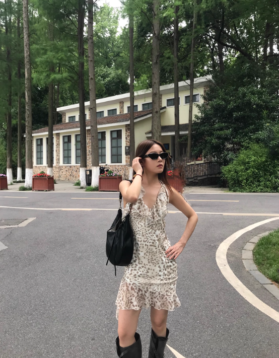 Robe d'été courte à imprimé léopard et col en V pour femme, tenue d'été asymétrique, D1832