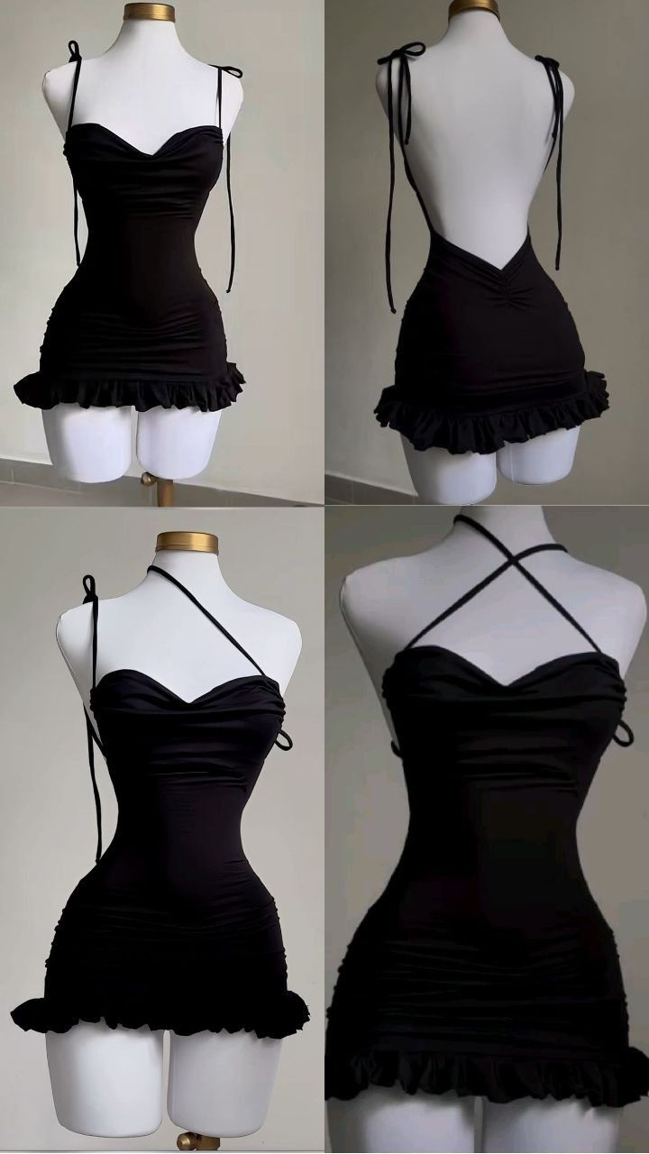 Robe de soirée courte sexy noire à bretelles et dos nu, robe de soirée, D1318