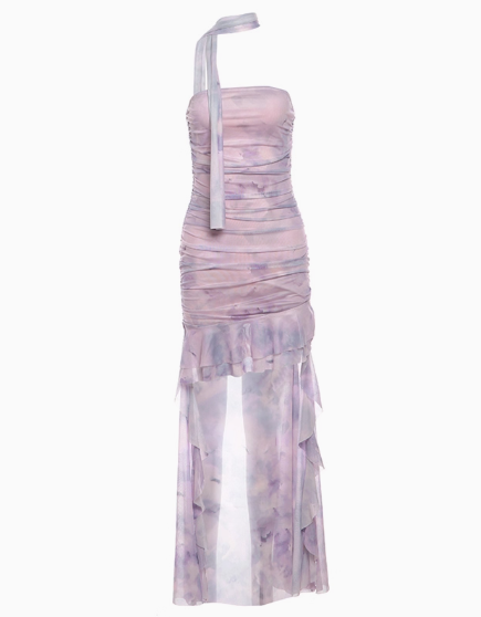 Robe d'été sexy à volants irréguliers et imprimé licou, taille fine, style hi-lo, tenue de soirée, de rendez-vous, pour femme, D1836