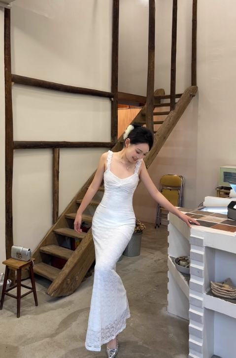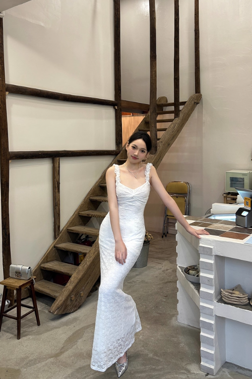 Robe fourreau sexy à épaules dénudées en dentelle, longueur cheville, motif floral, tenue de soirée, été, bord de mer, D1891