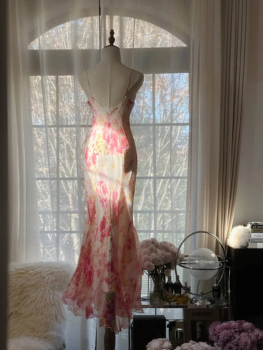 Robe de soirée sirène longue en mousseline de soie rose sexy à bretelles, robe d'invitée de mariage, D939