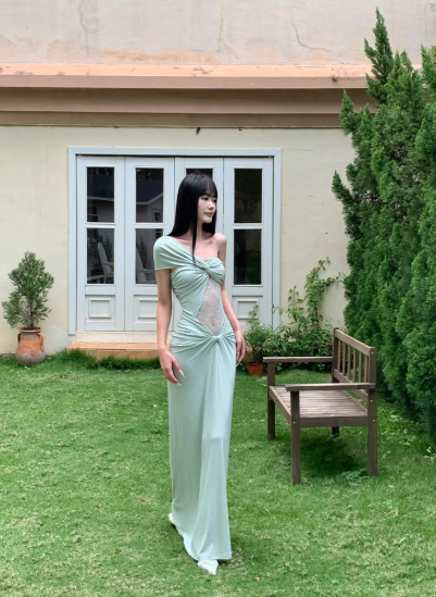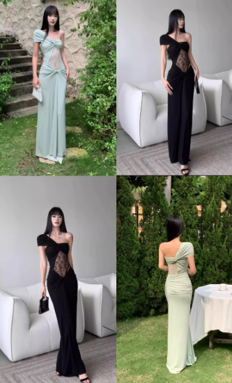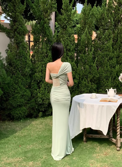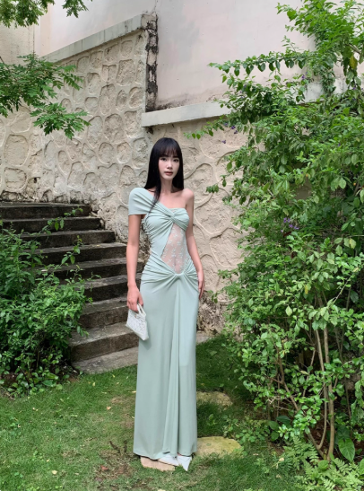 Robe longue sexy en dentelle plissée à une épaule pour vacances en bord de mer, style français, tenue d'été pour femme, tenue de rendez-vous, D1847