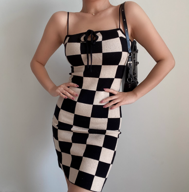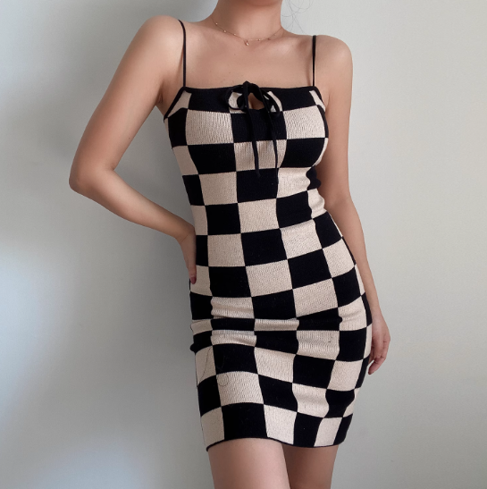 Robe d'été sexy à bretelles spaghetti et à carreaux, courte et ajustée, pour femme et adolescente, D2143