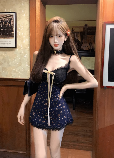 Robe de soirée d'été sexy à bretelles spaghetti et dentelle florale pour femme D1970