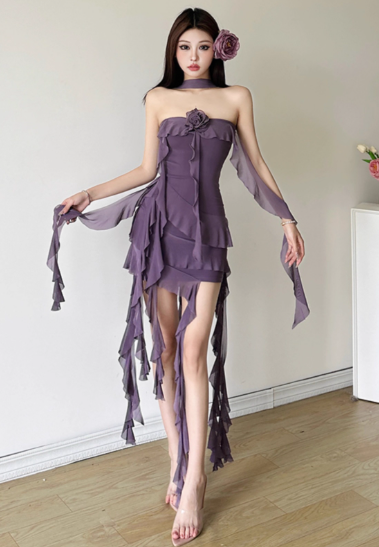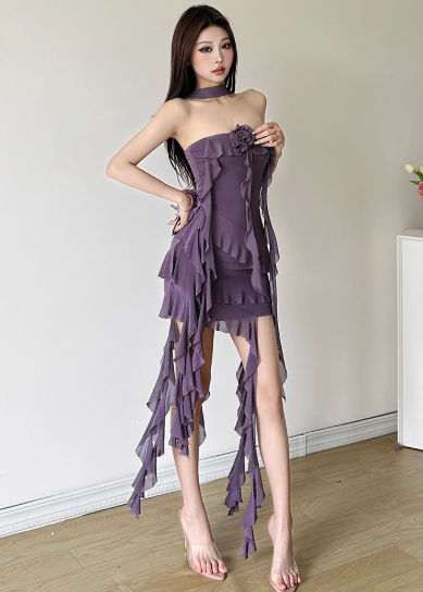 Mini-jupe bustier sexy à volants et volants pour femme, tenue de soirée, été, D1846