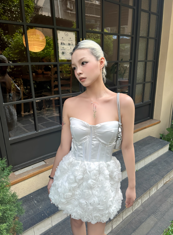 Robe de soirée sexy sans manches à décolleté en cœur et motif floral 3D, tenue courte, jupe, robe de bal D1796