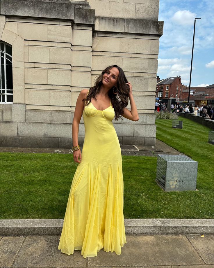 Robe fourreau longue et sexy jaune à bretelles spaghetti, robe de soirée pour invité de mariage, D645