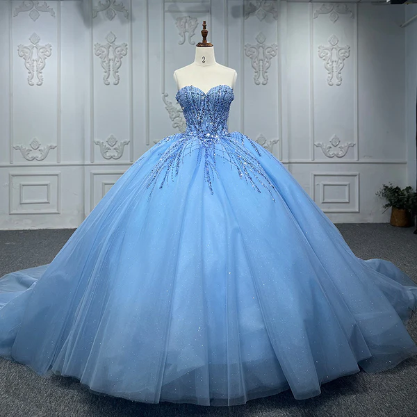 Robe de bal longue en tulle bleu brillant, coupe trapèze, robe de soirée MD7239
