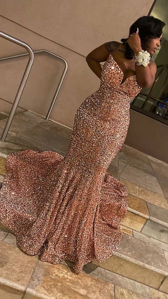 Robe de soirée longue en satin noir à paillettes et col en cœur rose brillant pour fille MD7652