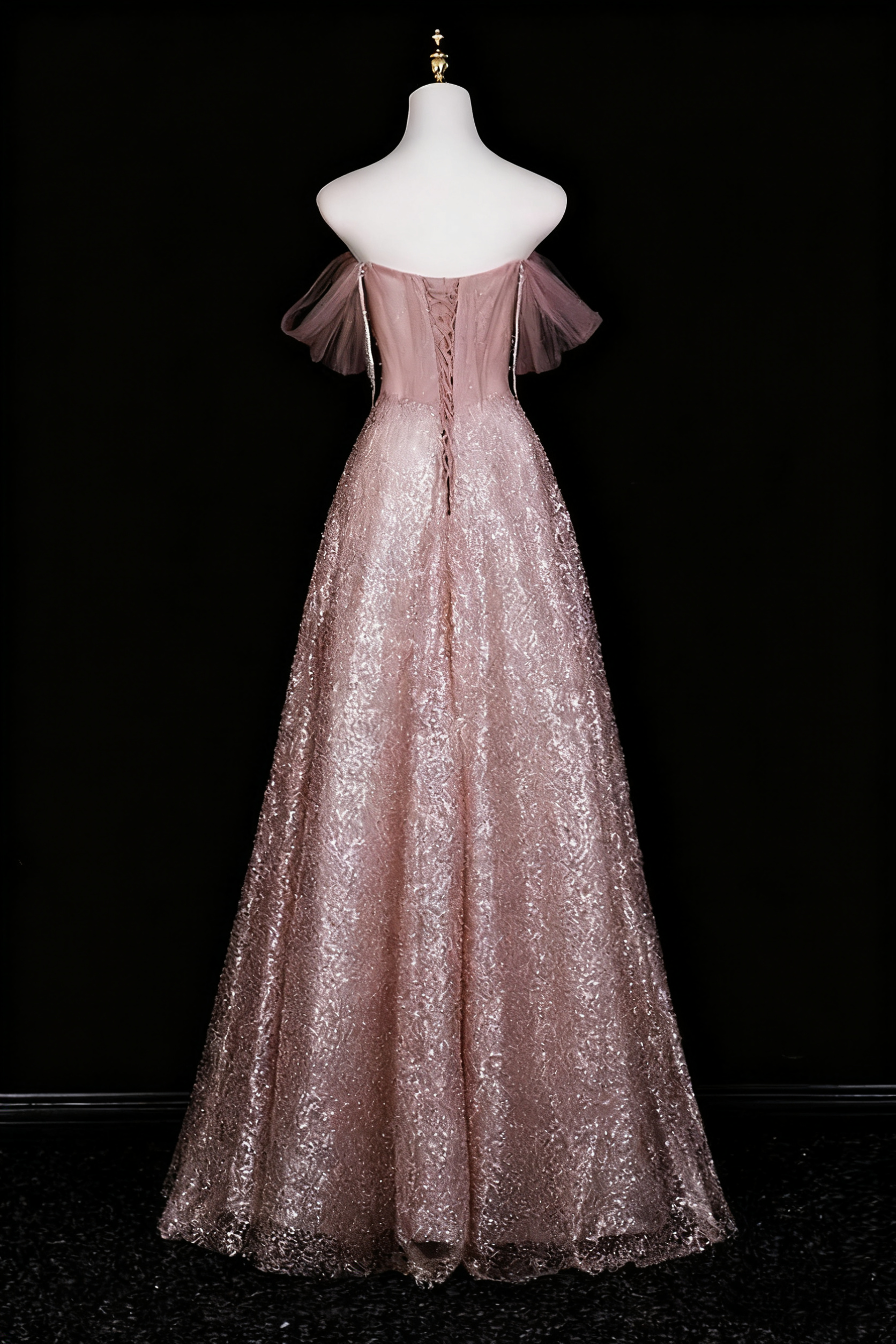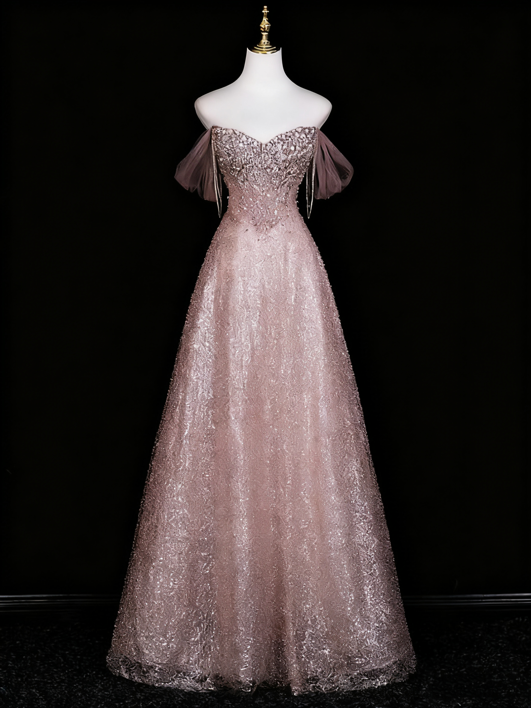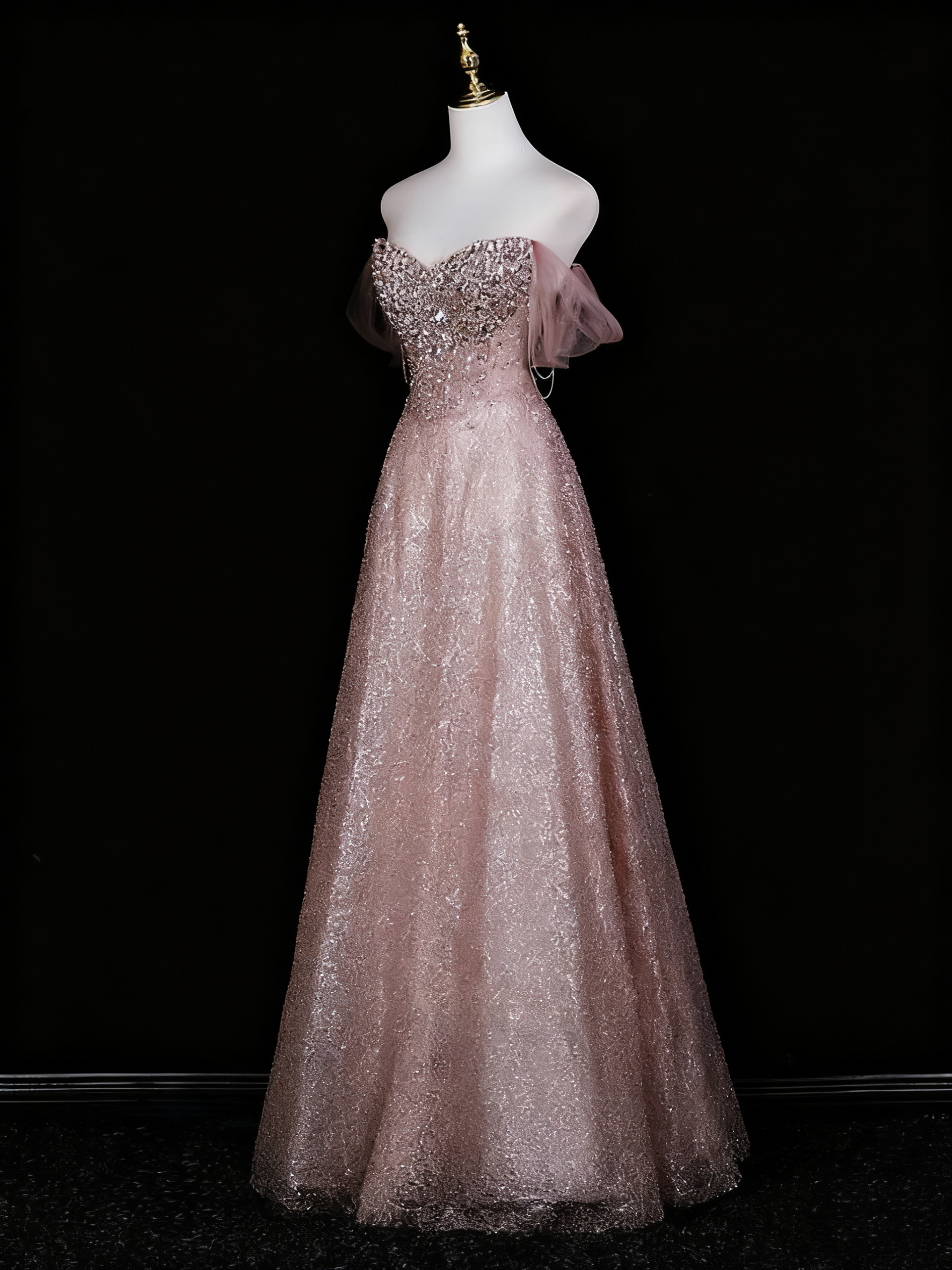Robe de bal brillante, coupe trapèze, épaules dénudées, robe de soirée en cristal, robe de Quinceanera, D3372
