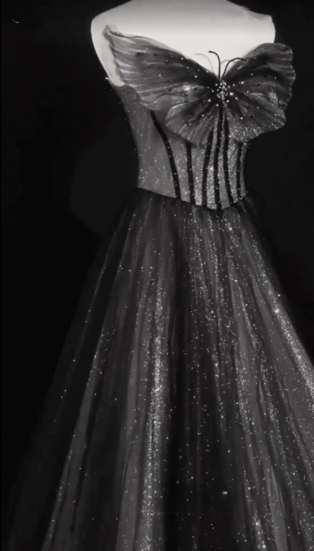 Robe de bal brillante, décolleté en cœur, papillon, robe de soirée, robe de soirée, D2979