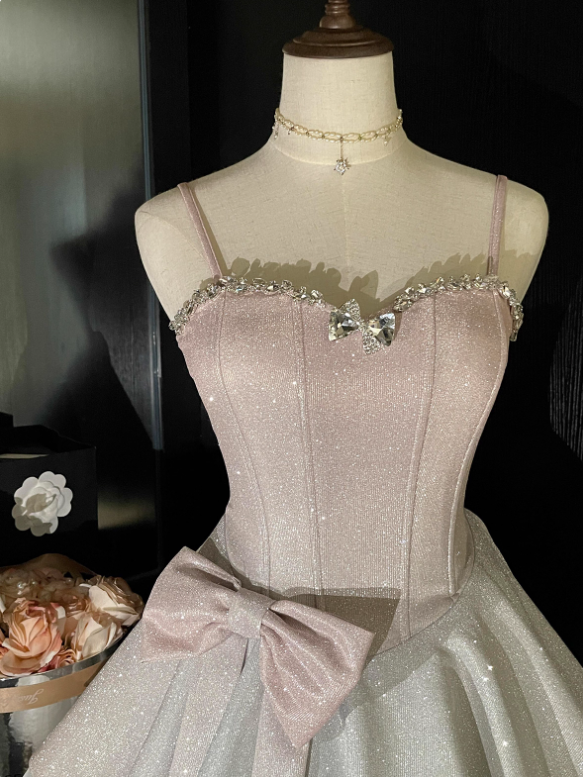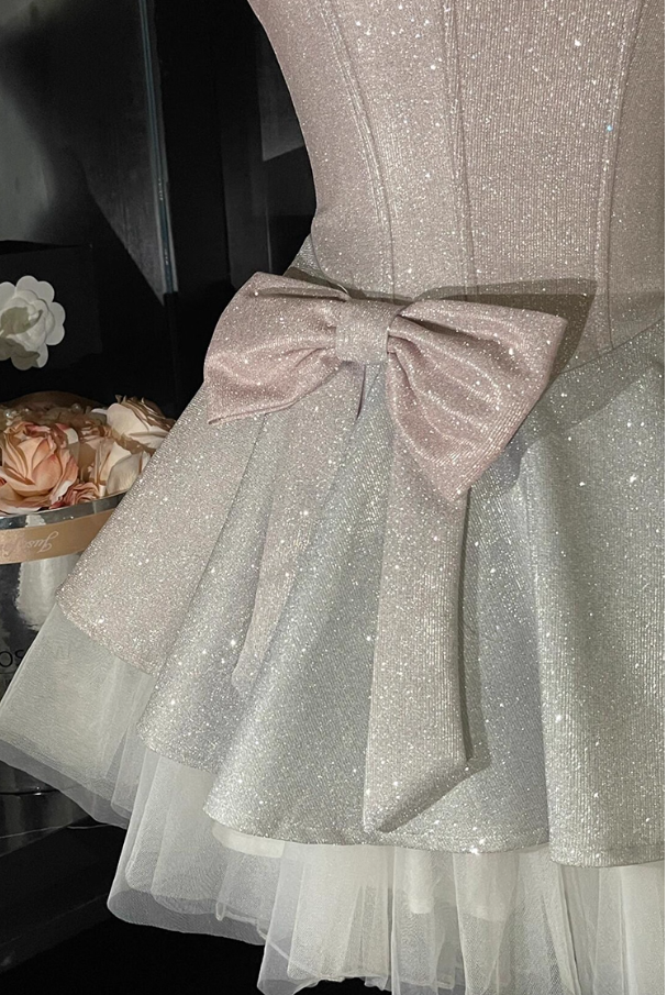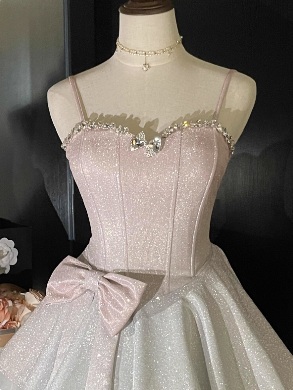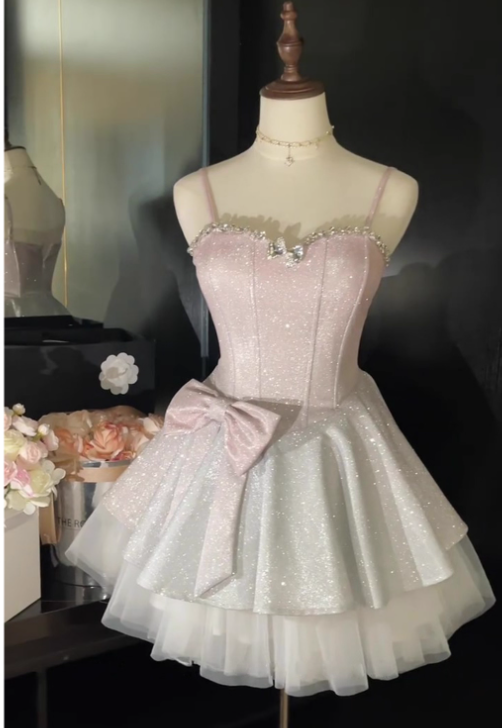 Robe de bal courte en tulle plissé à bretelles spaghetti brillantes et cristaux, tenue de rentrée scolaire, robe de princesse pour les 16 ans, D2192