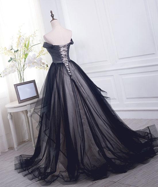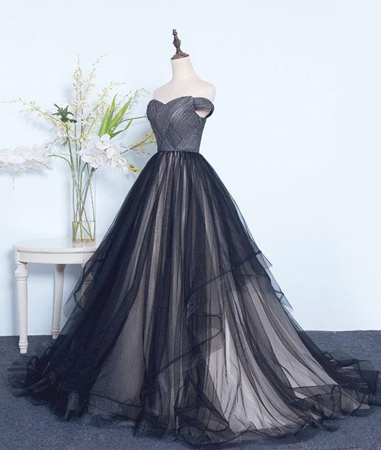 Robe de bal longue en tulle noir simple et décolleté en cœur, robe de soirée noire M4841
