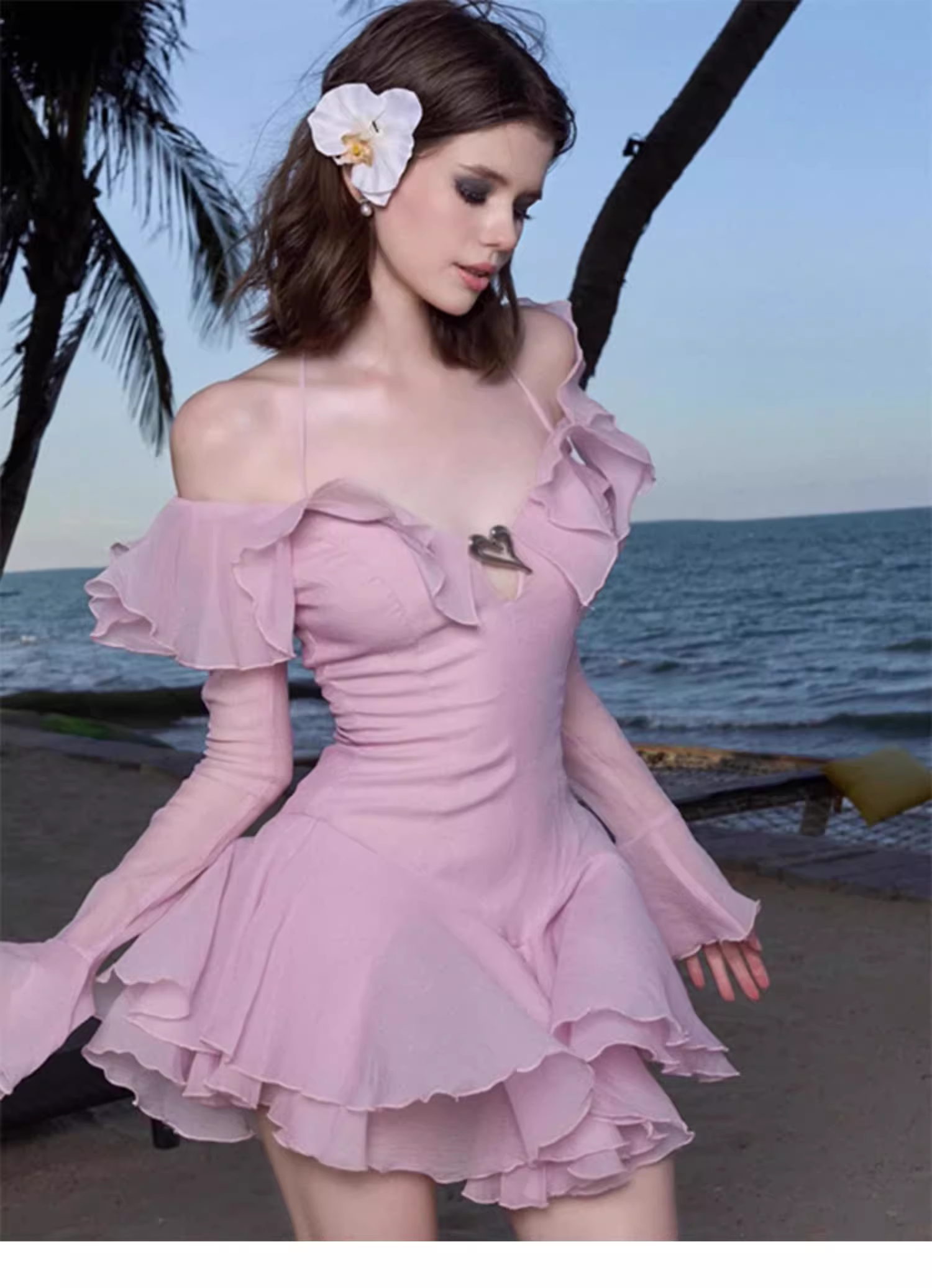 Robe de soirée trapèze rose à épaules dénudées, simple et tendance, D1391