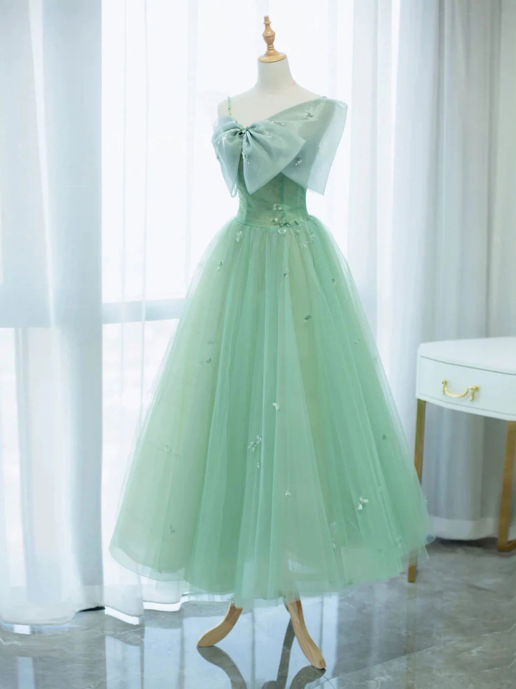 Robe de bal simple en tulle vert, longueur thé, robe de soirée en tulle vert M5818