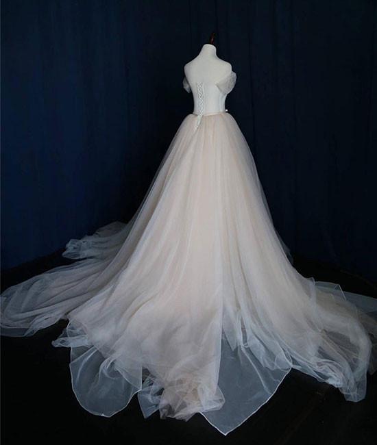 Robe de bal longue en tulle champagne clair et simple, robe de mariée en tulle champagne M4890