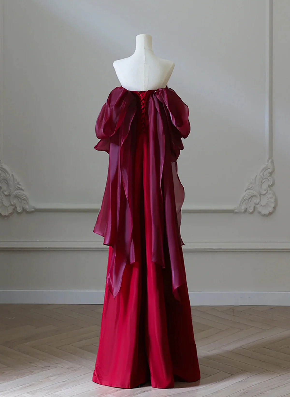 Robe de bal longue bordeaux en satin simple, robe de soirée longue bordeaux MD7258