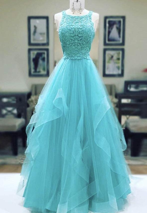 Robe de soirée longue en tulle et dentelle élégante M801