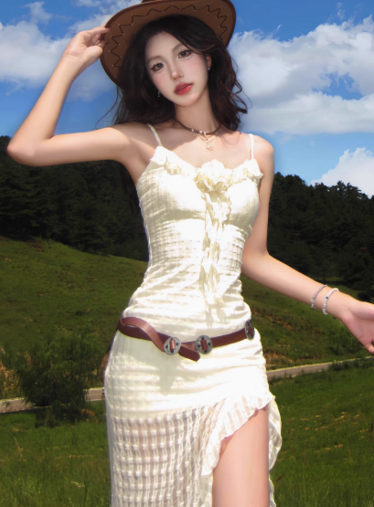 Robe d'été à volants et bretelles spaghetti pour femme, tenue de soirée, style bord de mer, D1795