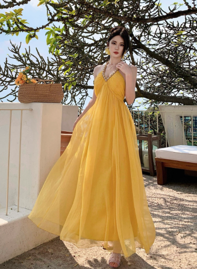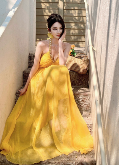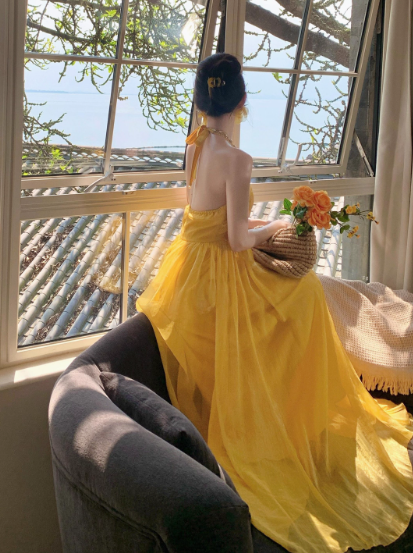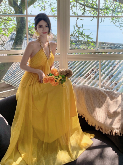 Robe longue d'été plissée en tulle à col en V et dos nu pour femme, tenue de plage, D1862