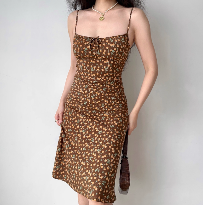 Robe mi-longue à bretelles spaghetti et imprimé floral pour femme et adolescente, tenue de soirée D2274