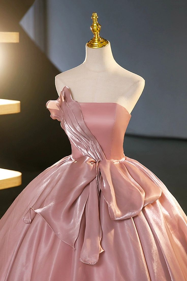 Robe de soirée longue en satin rose sans bretelles, coupe trapèze, MD7776